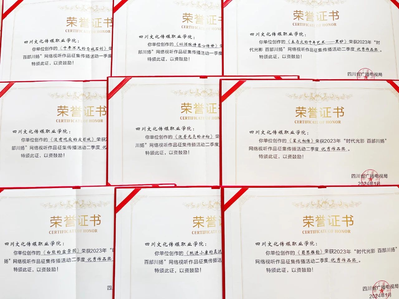 祝贺!文传职业学院选送多部纪录片获2023四川省“时代光影 百部川扬”网络视听作品征集传播活动优秀作品奖