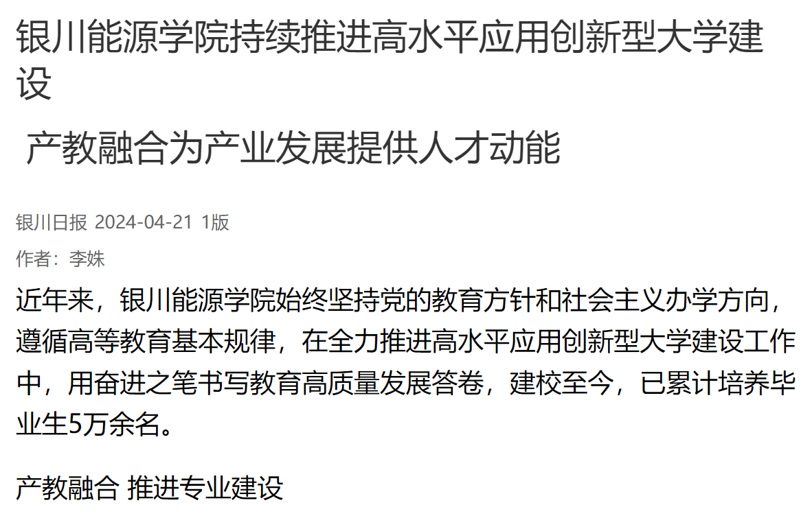 银川日报 | 银川能源学院持续推进高水平应用创新型大学建设