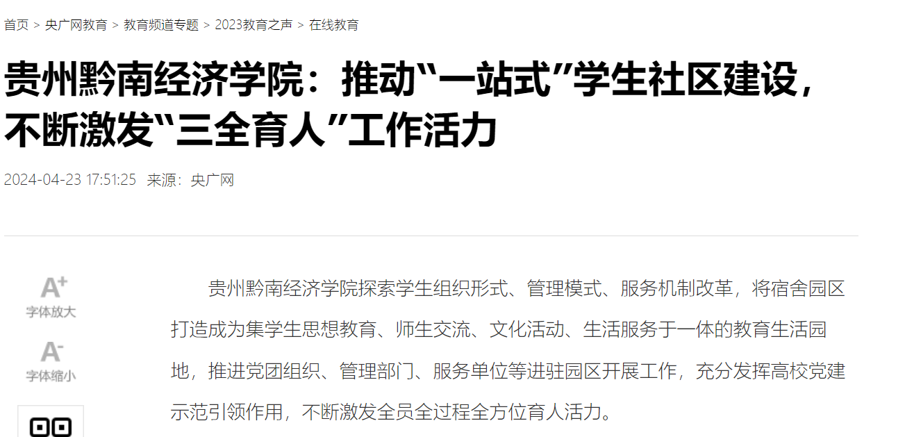 央广网| 贵州黔南经济学院:推动“一站式”学生社区建设,不断激发“三全育人”工作活力