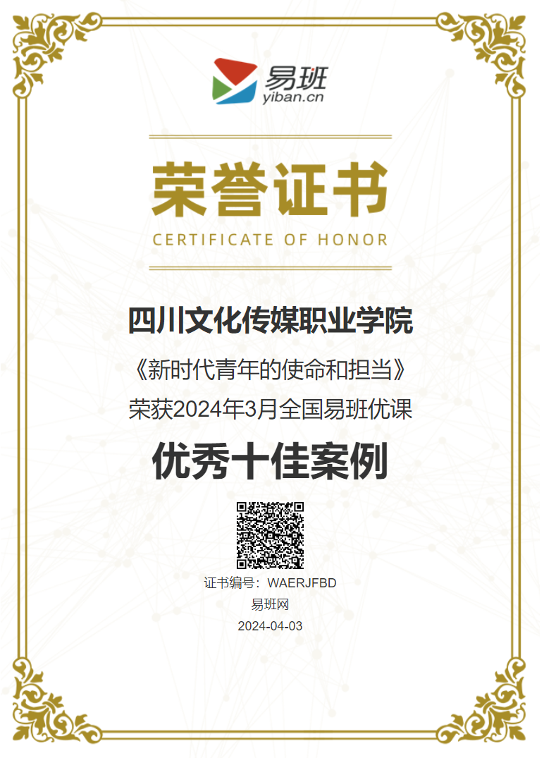 文传学院课程案例《新时代青年的使命和担当》,获评2024年3月全国易班优课优秀十佳案例且排名第一
