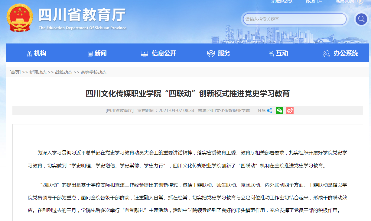 四川省教育厅 | 四川文化传媒职业学院“四联动”创新模式推进党史学习教育