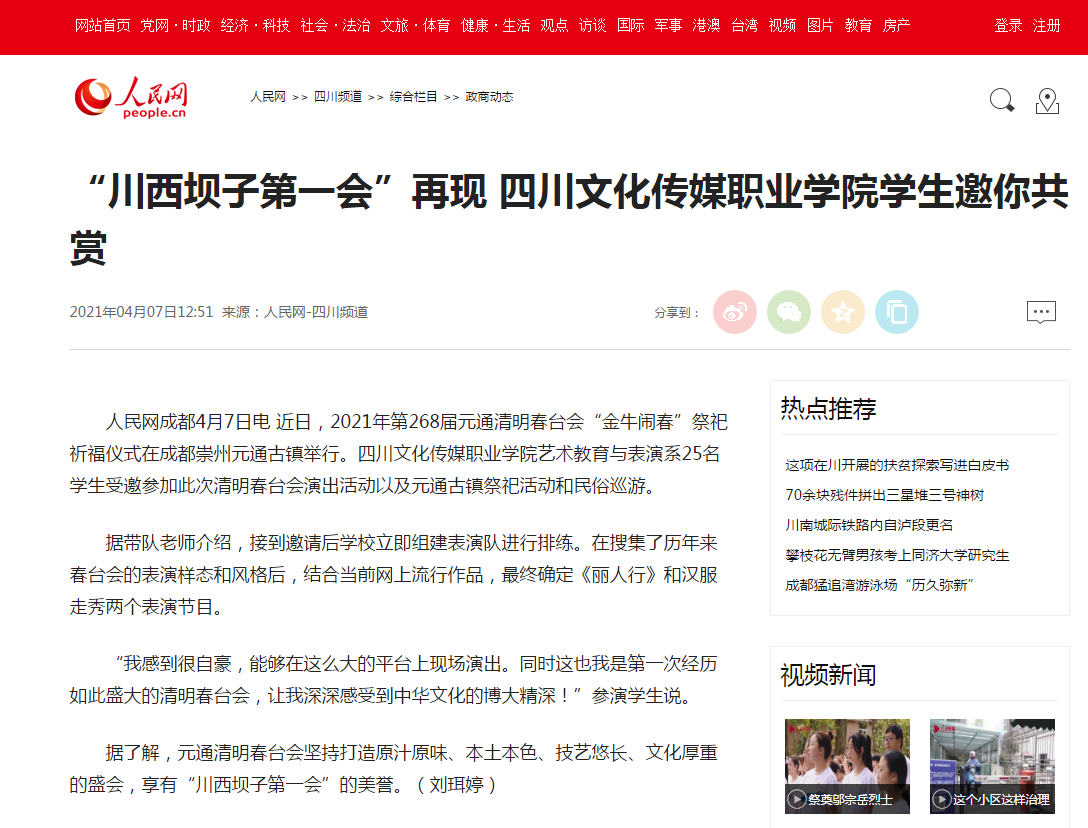人民网四川频道 | “川西坝子第一会”再现 四川文化传媒职业学院学生邀你共赏