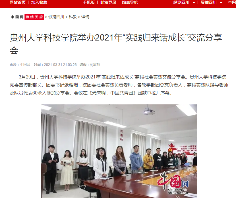 中国网锦秀天府|贵州大学科技学院举办2021年“实践归来话成长”交流分享会
