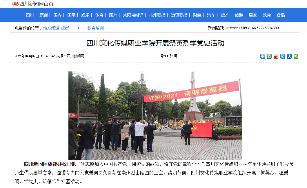 四川新闻网 | 四川文化传媒职业学院开展祭英烈学党史活动