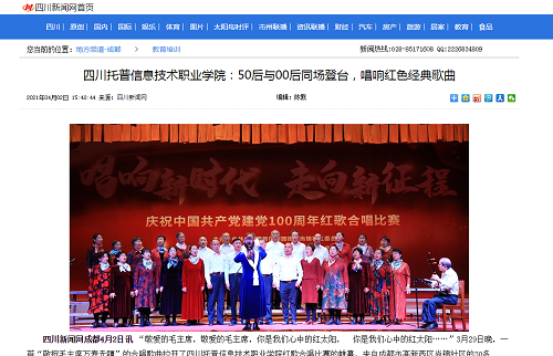 四川新闻网 | 四川托普信息技术职业学院:50后与00后同场登台,唱响红色经典歌曲