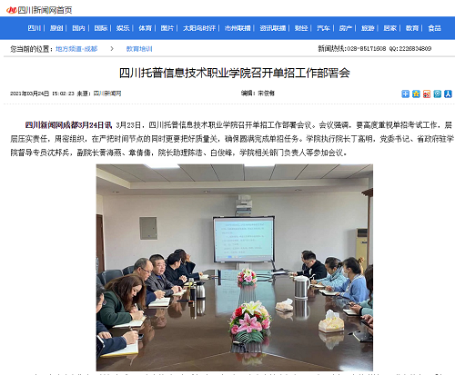 四川新闻网 | 四川托普信息技术职业学院召开单招工作部署会