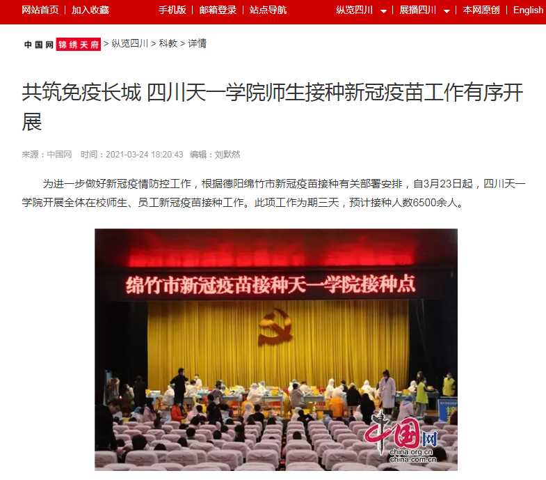 中国网锦秀天府|共筑免疫长城 四川天一学院师生接种新冠疫苗工作有序开展
