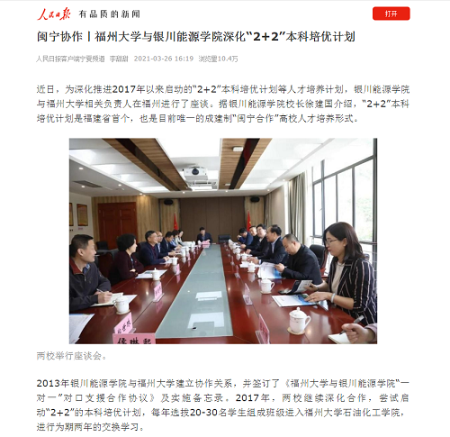 人民日报丨闽宁协作丨福州大学与银川能源学院深化“2+2”本科培优计划