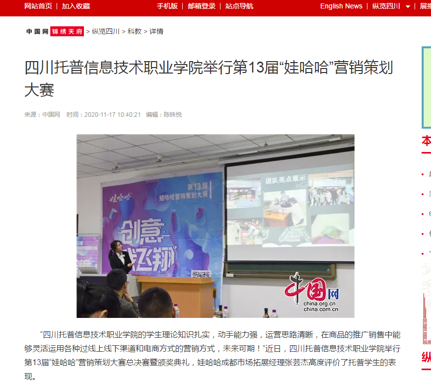 中国网锦绣天府 | 四川托普信息技术职业学院举行第13届“娃哈哈”营销策划大赛
