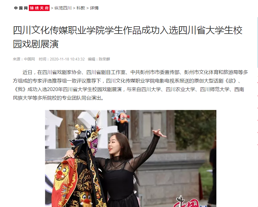 中国网锦绣天府 | 四川文化传媒职业学院学生作品成功入选四川省大学生校园戏剧展演