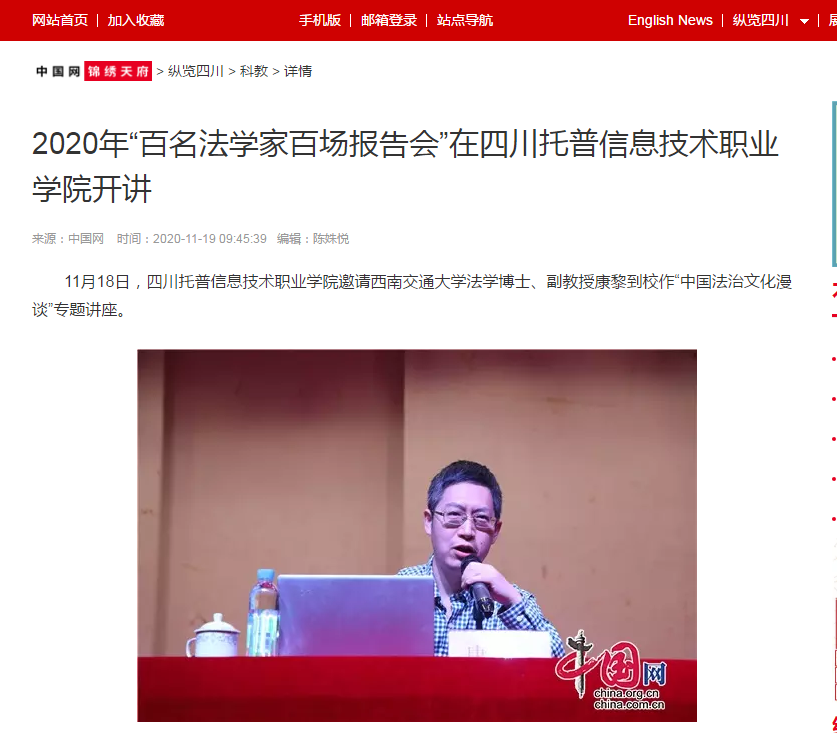 中国网锦绣天府 | 2020年“百名法学家百场报告会”在四川托普信息技术职业学院开讲