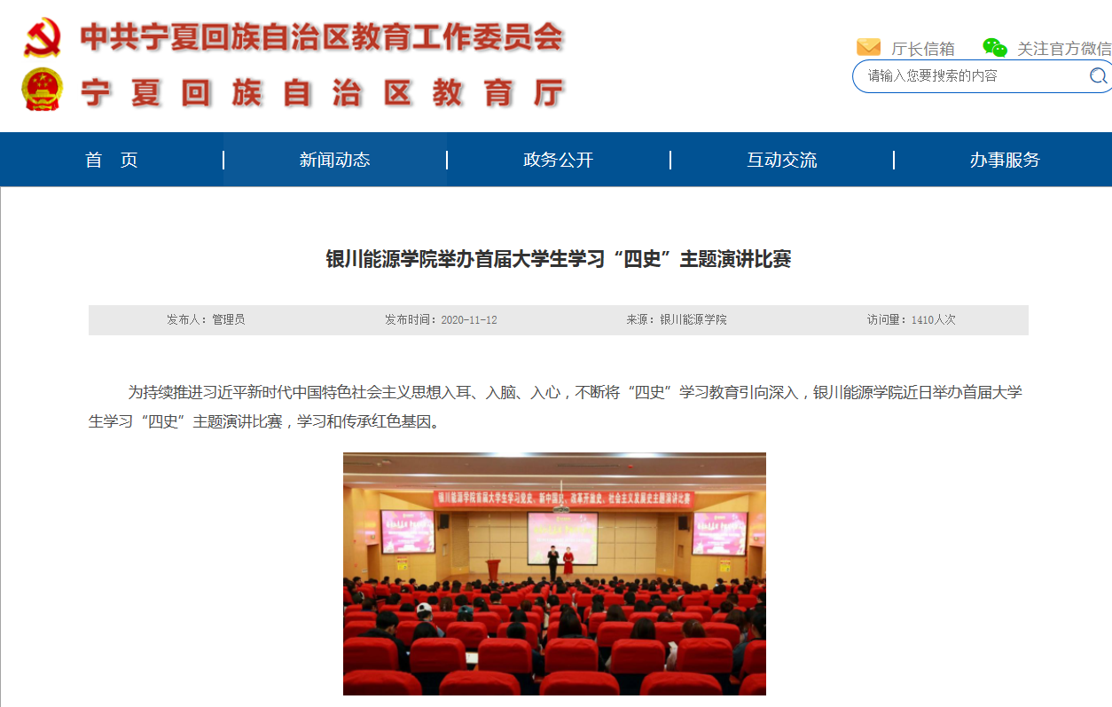 宁夏回族自治区教育厅 | 银川能源学院举办首届大学生学习“四史”主题演讲比赛