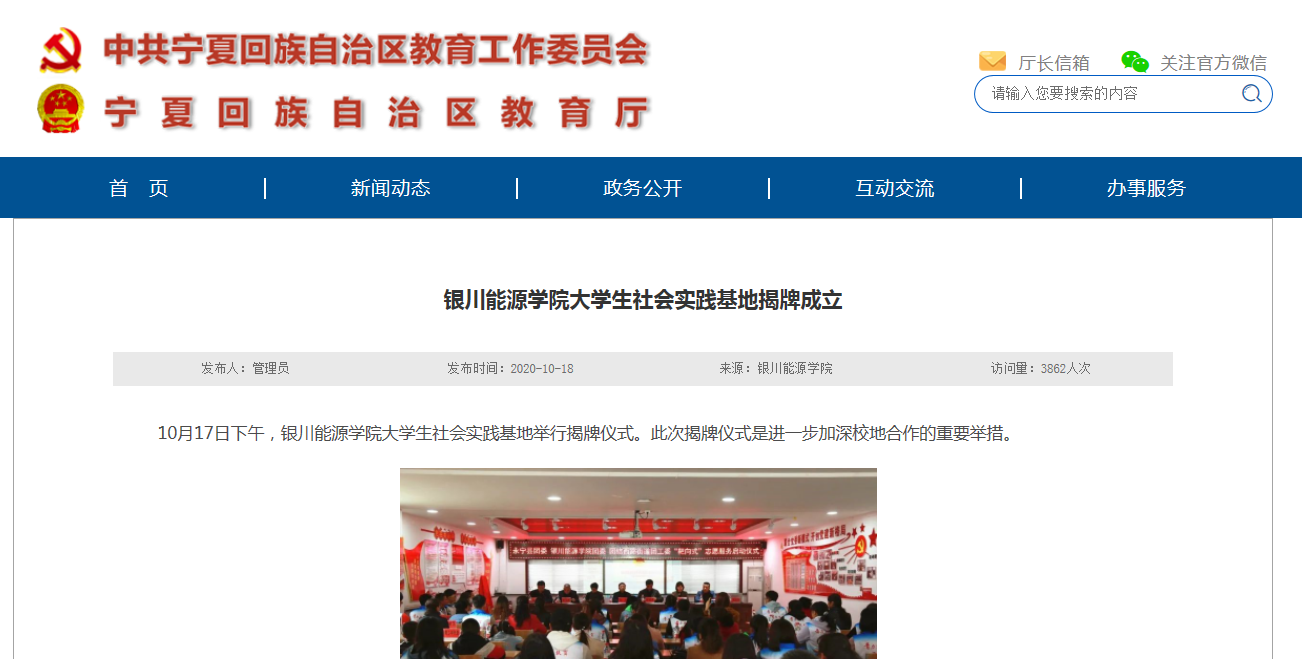 宁夏回族自治区教育厅 | 银川能源学院大学生社会实践基地揭牌成立