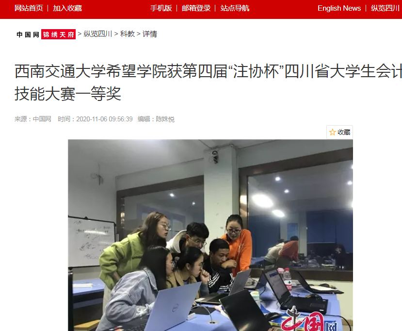 中国网锦绣天府 | 西南交通大学希望学院获第四届“注协杯”四川省大学生会计技能大赛一等奖
