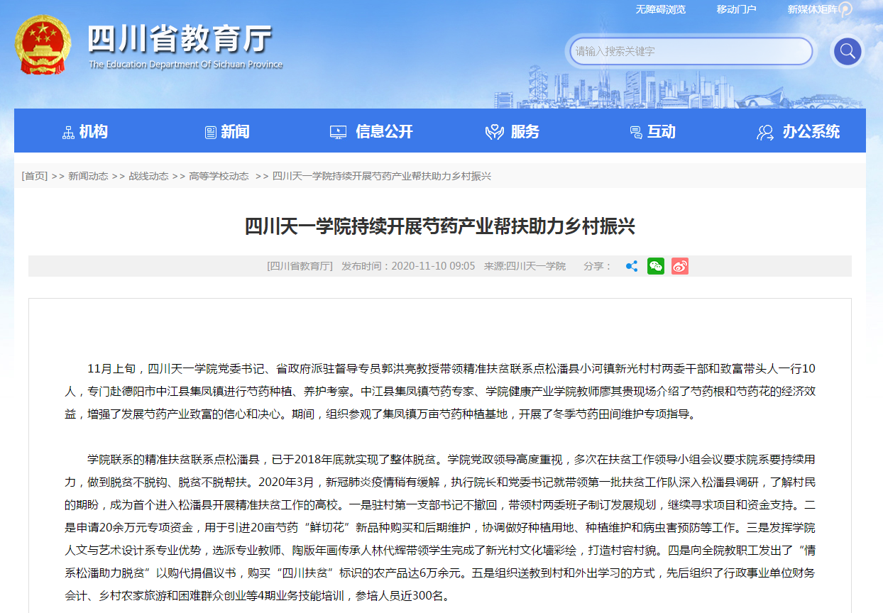 四川省教育厅 | 四川天一学院持续芍药帮扶 助力乡村振兴