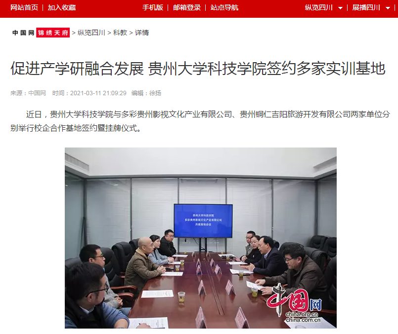 中国网锦绣天府 | 促进产学研融合发展 贵州大学科技学院签约多家实训基地