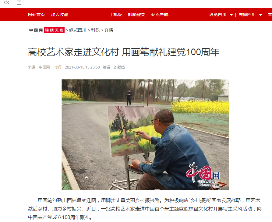 中国网锦绣天府 | 四川文化传媒职业学院艺术家走进文化村 用画笔献礼建党100周年
