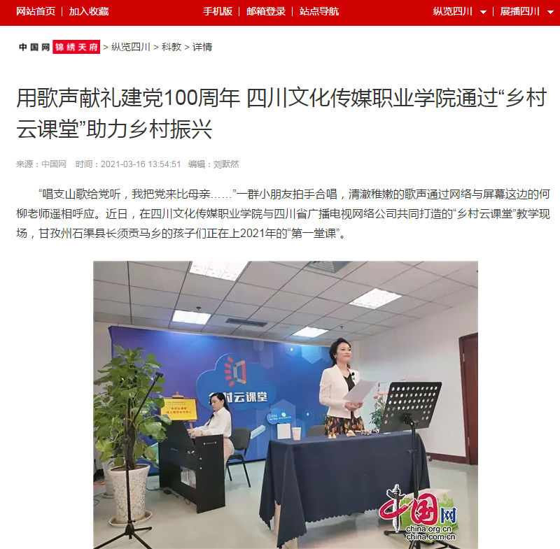 中国网锦秀天府|用歌声献礼建党100周年 四川文化传媒职业学院通过“乡村云课堂”助力乡村振兴