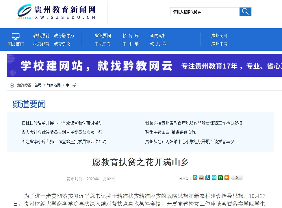 贵州教育新闻网 | 贵州财经大学商务学院:愿教育扶贫之花开满山乡