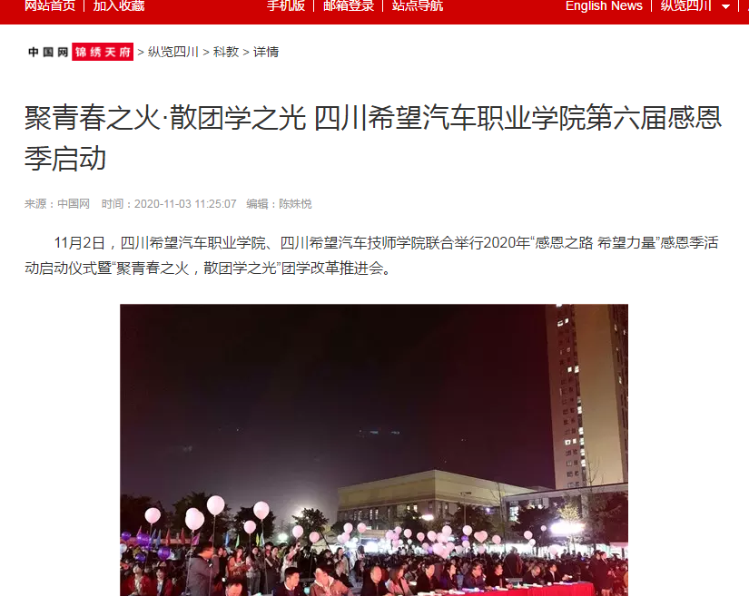 中国网锦绣天府 | 聚青春之火·散团学之光 四川希望汽车职业学院第六届感恩季启动