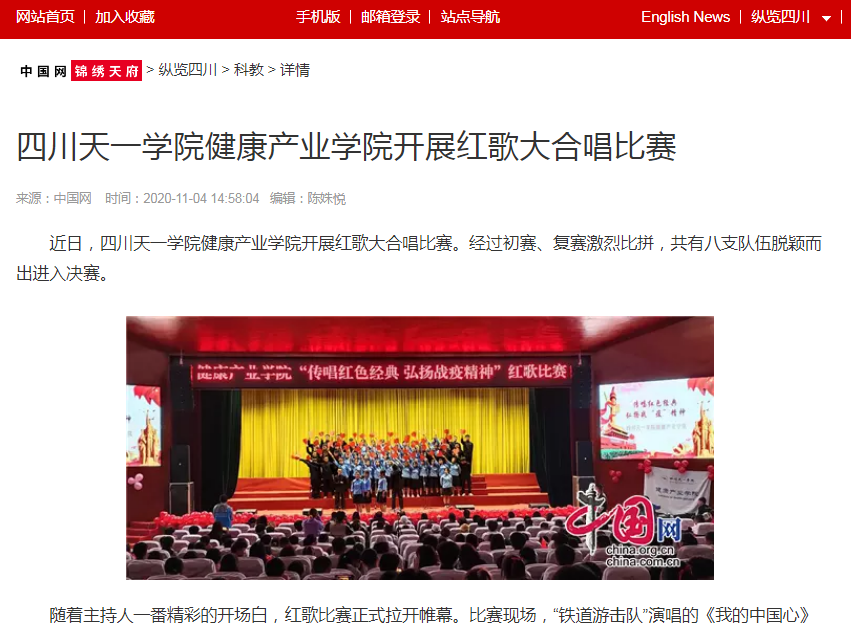 中国网锦绣天府 | 四川天一学院健康产业学院开展红歌大合唱比赛