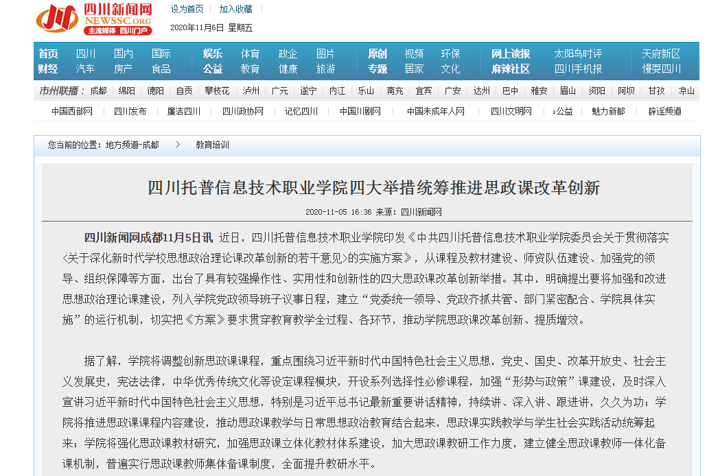 四川新闻网 | 四川托普信息技术职业学院四大举措统筹推进思政课改革创新