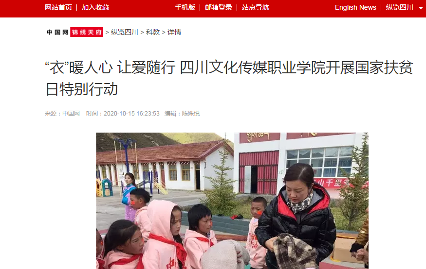 中国网锦绣天府 | “衣”暖人心 让爱随行 四川文化传媒职业学院开展国家扶贫日特别行动