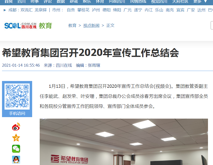 四川在线 | 希望教育集团召开2020年宣传工作总结会