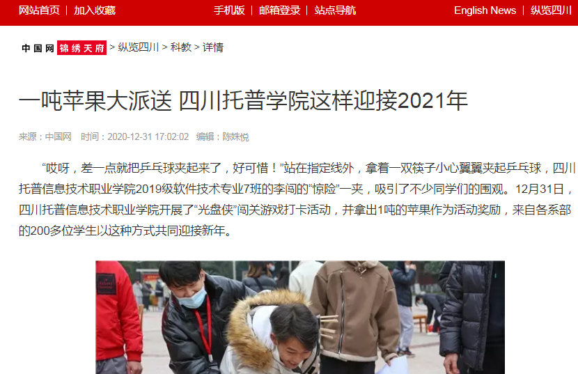 中国网锦绣天府 | 一吨苹果大派送 四川托普学院这样迎接2021年