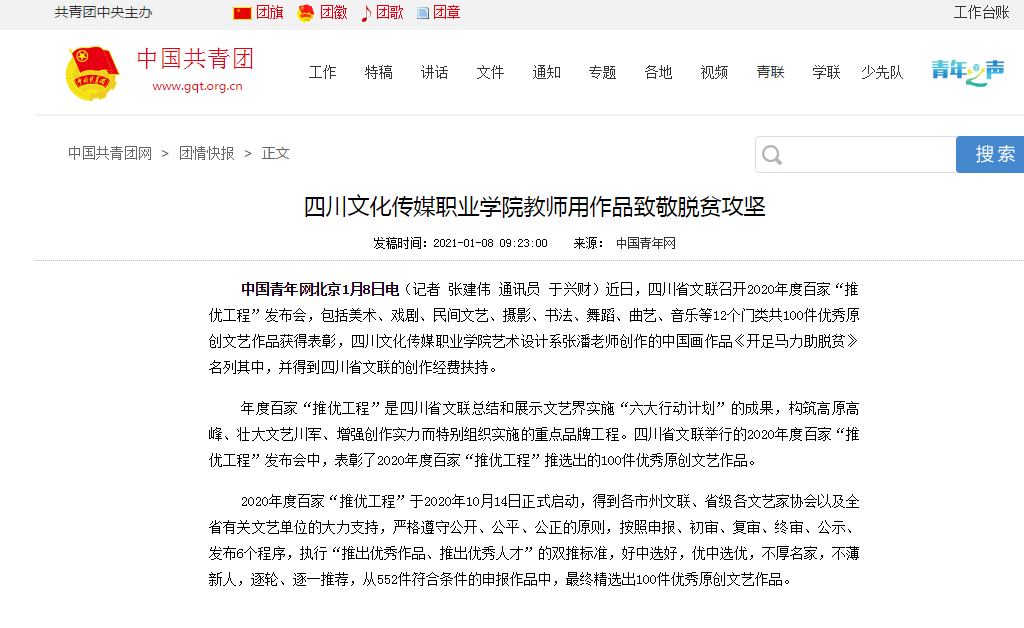 中国共青团 | 四川文化传媒职业学院教师用作品致敬脱贫攻坚