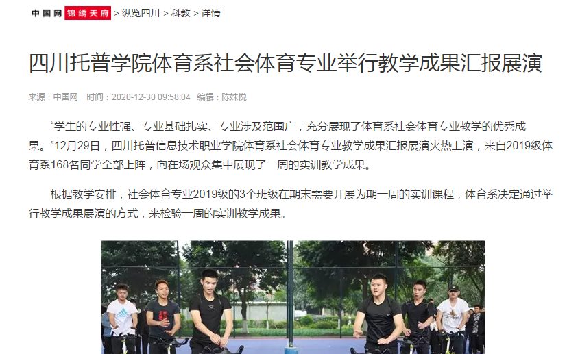 中国网锦绣天府 | 四川托普学院体育系社会体育专业举行教学成果汇报展演