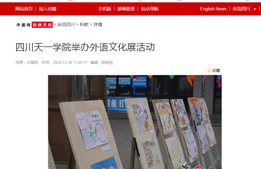 中国网锦绣天府 | 四川天一学院举办外语文化展活动