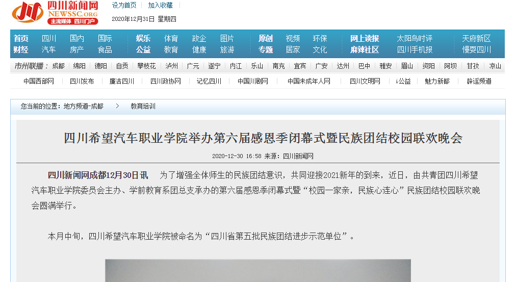 四川新闻网 | 四川希望汽车职业学院举办第六届感恩季闭幕式暨民族团结校园联欢晚会