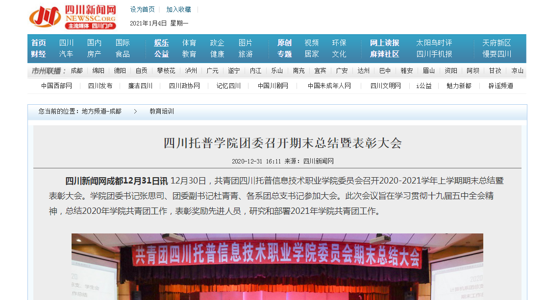 四川新闻网 | 四川托普学院团委召开期末总结暨表彰大会