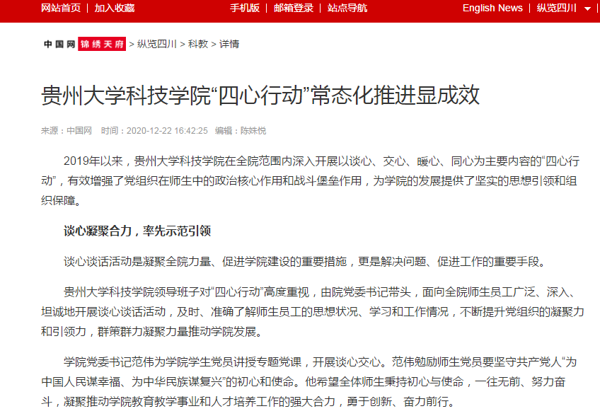 中国网锦绣天府 | 贵州大学科技学院“四心行动”常态化推进显成效