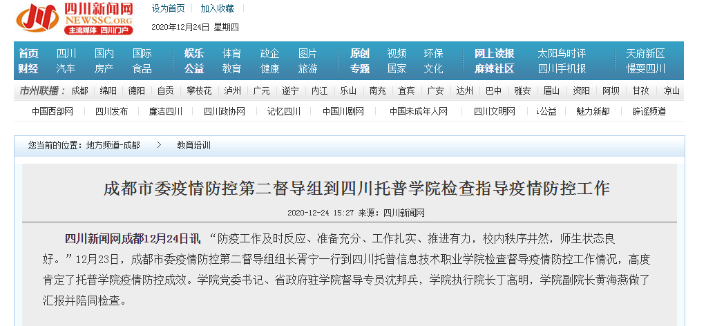 四川新闻网 | 成都市委疫情防控第二督导组到四川托普学院检查指导疫情防控工作