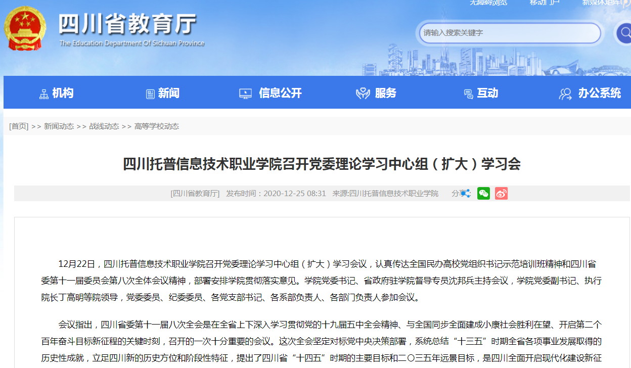 四川省教育厅 | 四川托普信息技术职业学院召开党委理论学习中心组(扩大)学习会