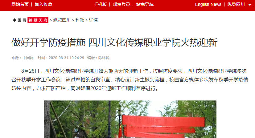 中国网锦绣天府 | 做好开学防疫措施 四川文化传媒职业学院火热迎新