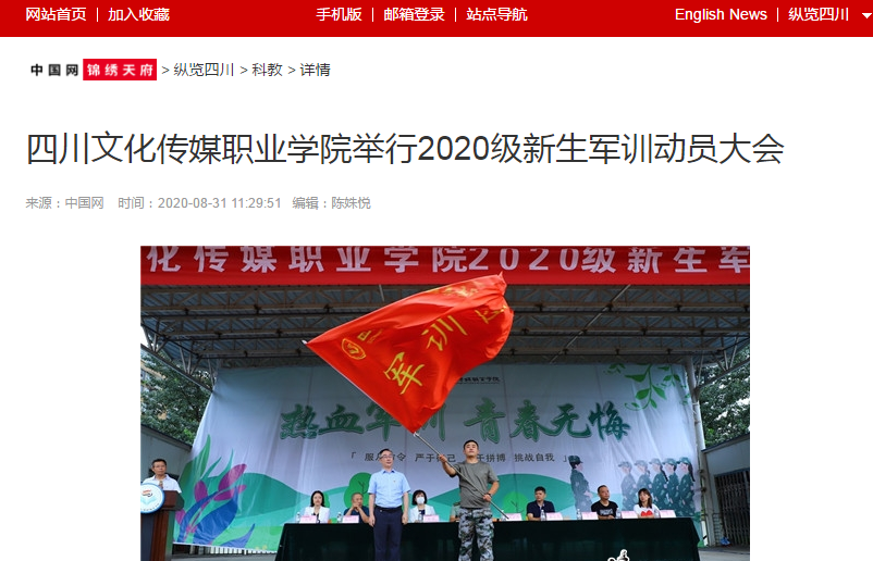 中国网锦绣天府 | 四川文化传媒职业学院举行2020级新生军训动员大会