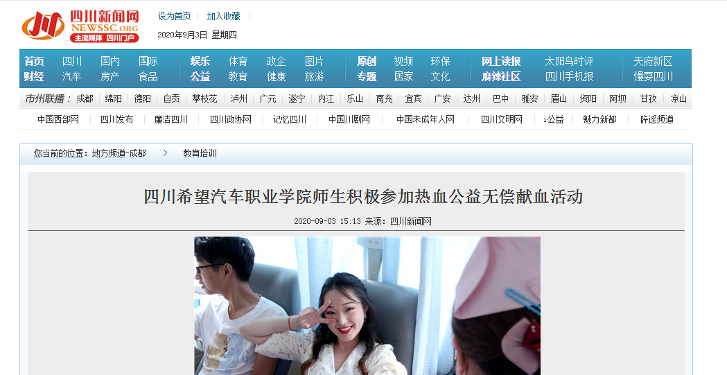 四川新闻网 | 四川希望汽车职业学院师生积极参加热血公益无偿献血活动