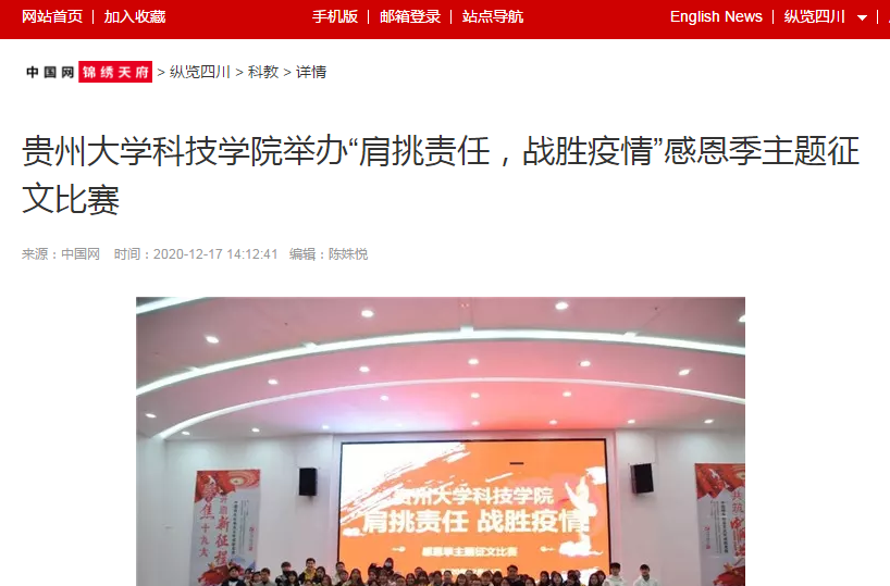中国网锦绣天府 | 贵州大学科技学院举办“肩挑责任,战胜疫情”感恩季主题征文比赛