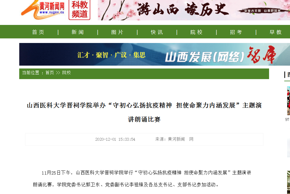 黄河新闻网 | 山西医科大学晋祠学院举办“守初心弘扬抗疫精神 担使命聚力内涵发展”主题演讲朗诵比赛