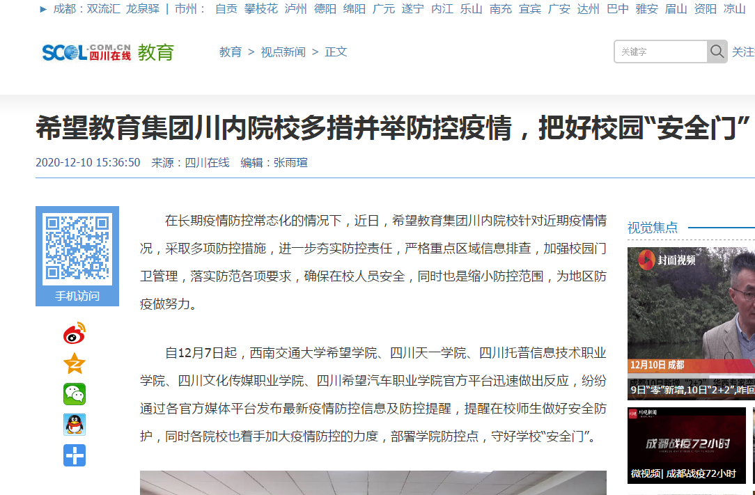 四川在线 | 希望教育集团川内院校多措并举防控疫情,把好校园“安全门”