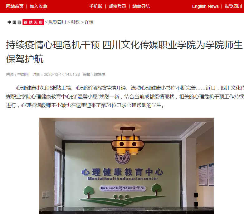中国网锦绣天府 | 持续疫情心理危机干预 四川文化传媒职业学院为学院师生保驾护航