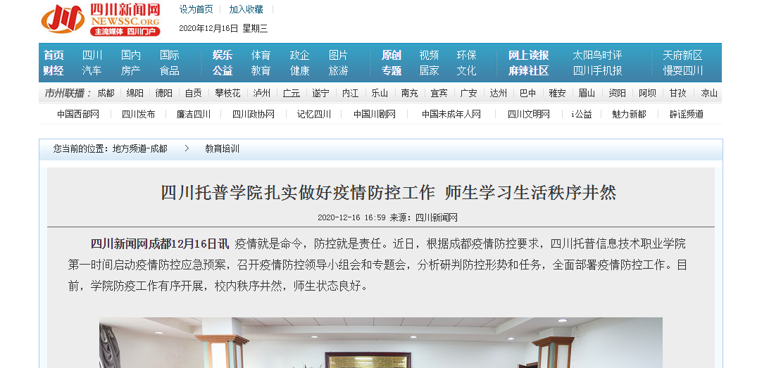 四川新闻网 | 四川托普信息技术职业学院扎实做好疫情防控工作 师生学习生活秩序井然