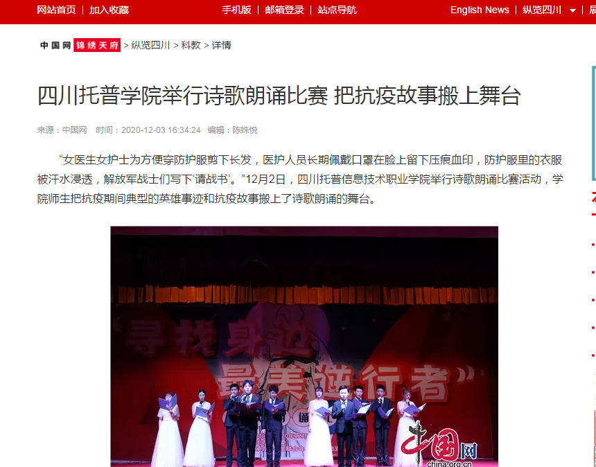 中国网锦绣天府 | 四川托普学院举行诗歌朗诵比赛 把抗疫故事搬上舞台