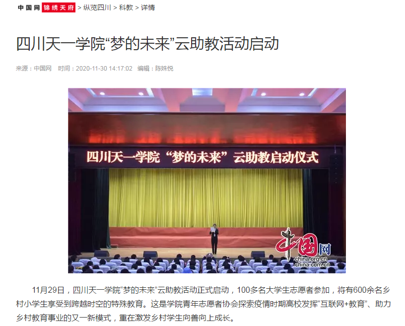中国网锦绣天府 | 四川天一学院“梦的未来”云助教活动启动