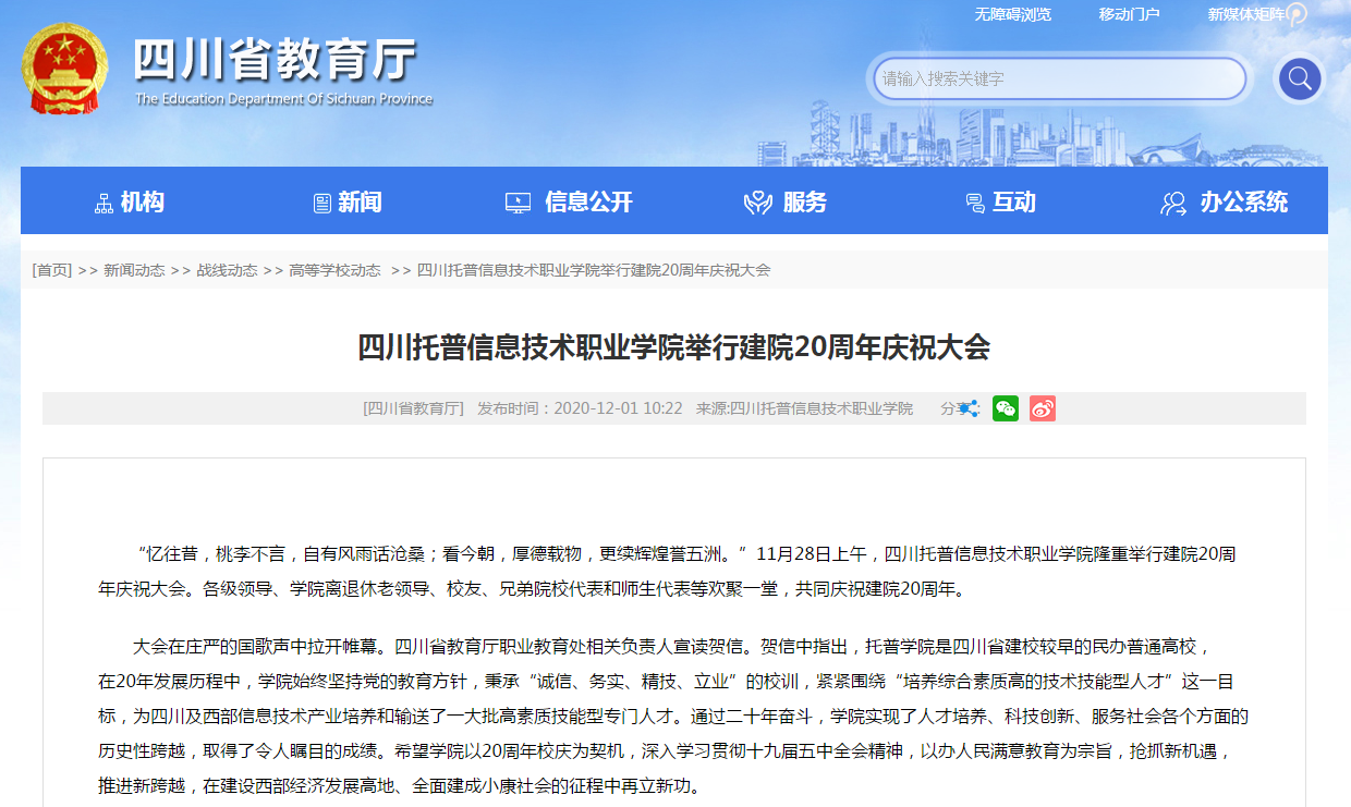 四川省教育厅 | 四川托普信息技术职业学院举行建院20周年庆祝大会