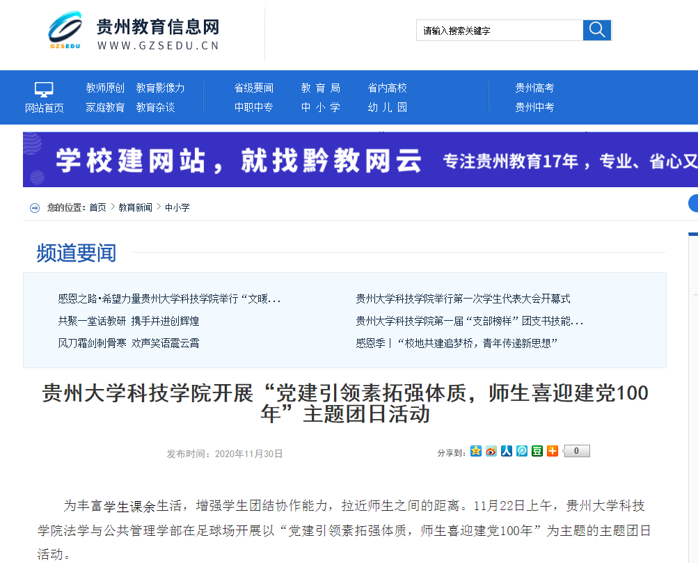 多彩贵州网 | 贵州大学科技学院开展“党建引领素拓强体质,师生喜迎建党100年”主题团日活动