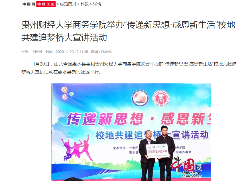 中国网锦绣天府 | 贵州财经大学商务学院举办“传递新思想·感恩新生活”校地共建追梦桥大宣讲活动